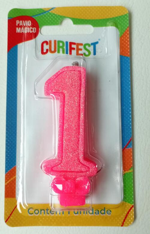 VELA ANIVER SUPER NUMERO GLITTER N.1 ROSA CURIFEST