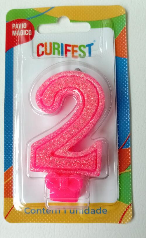 VELA ANIVER SUPER NUMERO GLITTER N.2 ROSA CURIFEST