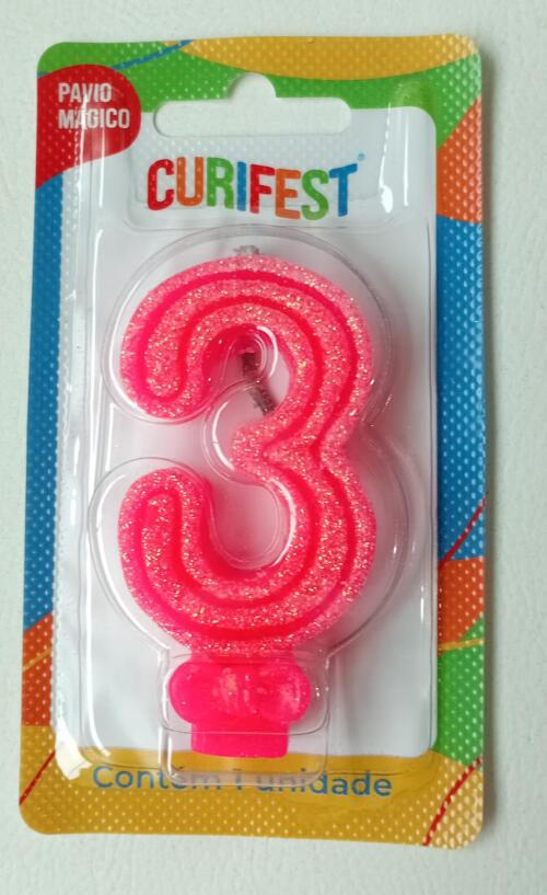 VELA ANIVER SUPER NUMERO GLITTER N.3 ROSA CURIFEST