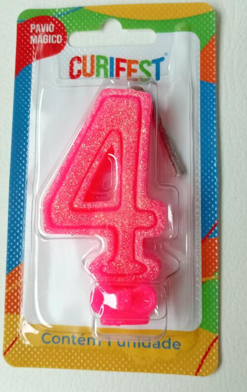 VELA ANIVER SUPER NUMERO GLITTER N.4 ROSA CURIFEST
