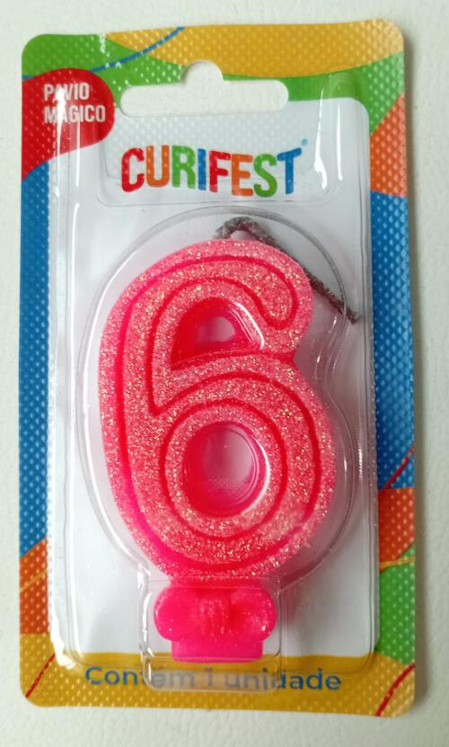 VELA ANIVER SUPER NUMERO GLITTER N.6 ROSA CURIFEST