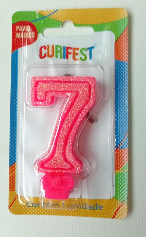 VELA ANIVER SUPER NUMERO GLITTER N.7 ROSA CURIFEST