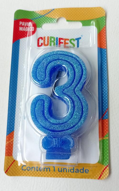 VELA ANIVER SUPER NUMERO GLITTER N.3 AZUL CURIFEST