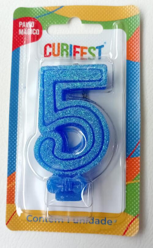 VELA ANIVER SUPER NUMERO GLITTER N.5 AZUL CURIFEST