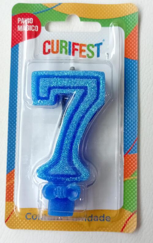 VELA ANIVER SUPER NUMERO GLITTER N.7 AZUL CURIFEST