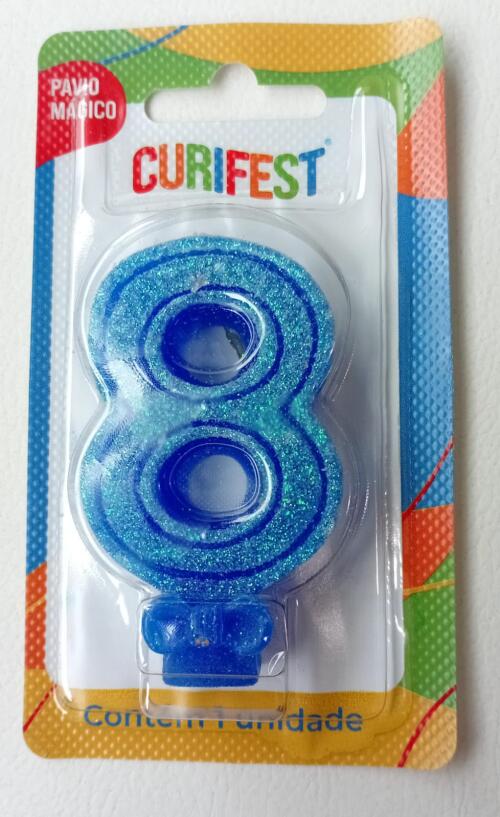 VELA ANIVER SUPER NUMERO GLITTER N.8 AZUL CURIFEST
