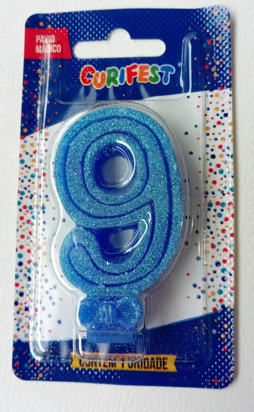 VELA ANIVER SUPER NUMERO GLITTER N.9 AZUL CURIFEST